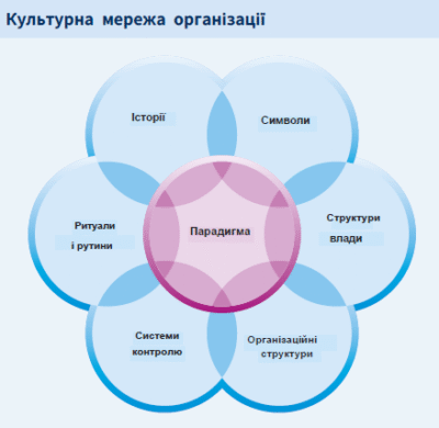| Історії та міфи | Наративи, що передають цінності, переконання та норми поведінки. | Які історії розповідають про нашу компанію? Які герої, лиходії та бунтарі в них фігурують? Що ці історії говорять про те, у що ми віримо і що цінуємо? Які розповіді передаються новим співробітникам? |